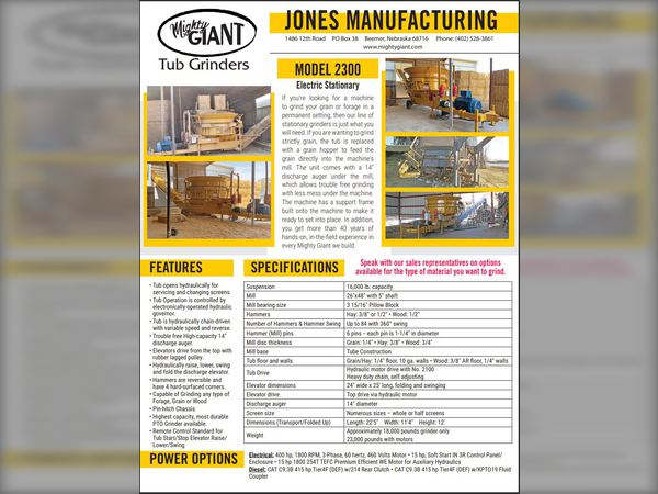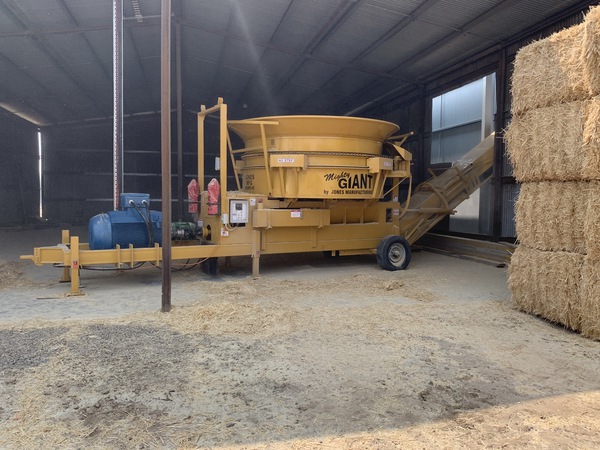 This grinder is perfect for any size farm or feedlot. It is a heavy duty, commercial stationary grinder built for all your grinding needs. It features a variable speed, hydraulically and electronically driven tub. The hydraulically driven, swinging, stacking conveyor is optional. Both the tub and elevator are run by remote control for operator convenience. With several different engine options, it is custom built to fit everyone’s needs. Call for more information.